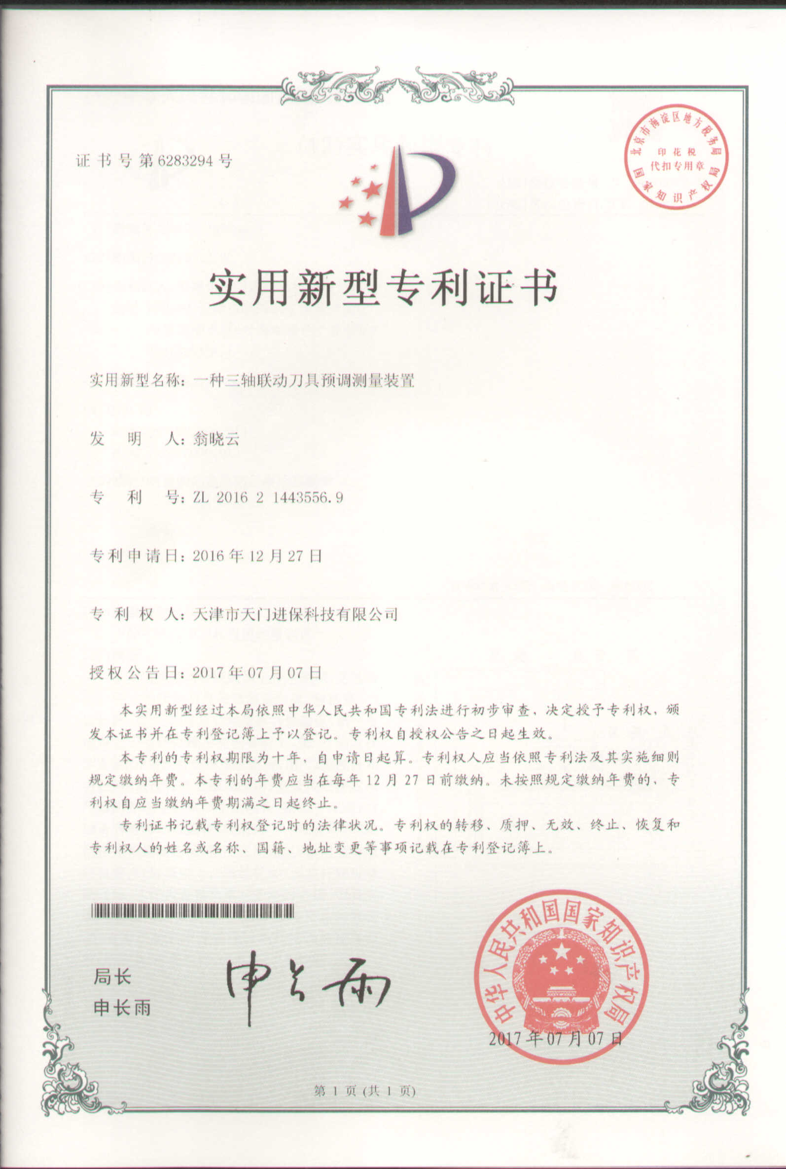 • 三軸聯(lián)動刀具預(yù)調(diào)測量儀實(shí)用新型專利